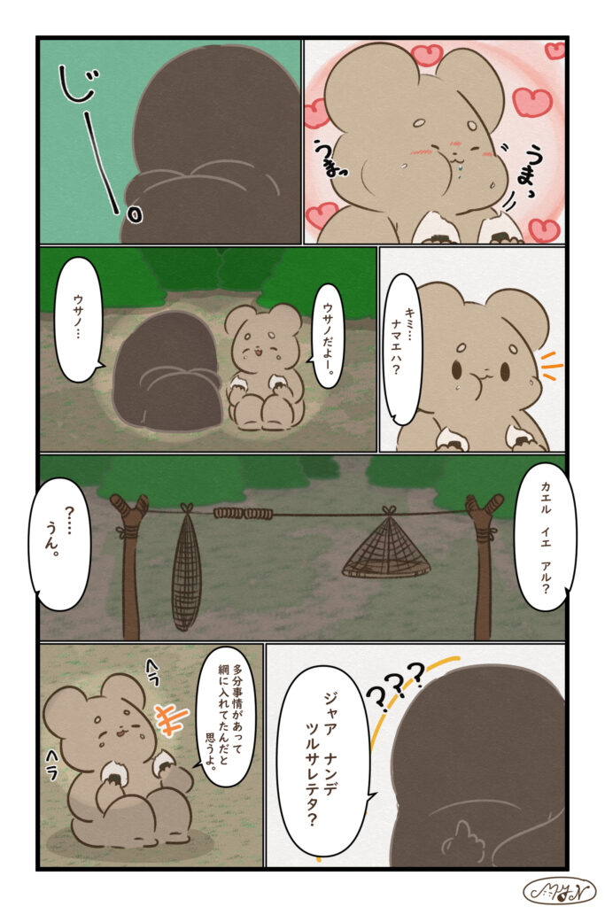 助けてくれた“謎の子”と、ついに言葉を交わすウサノ。