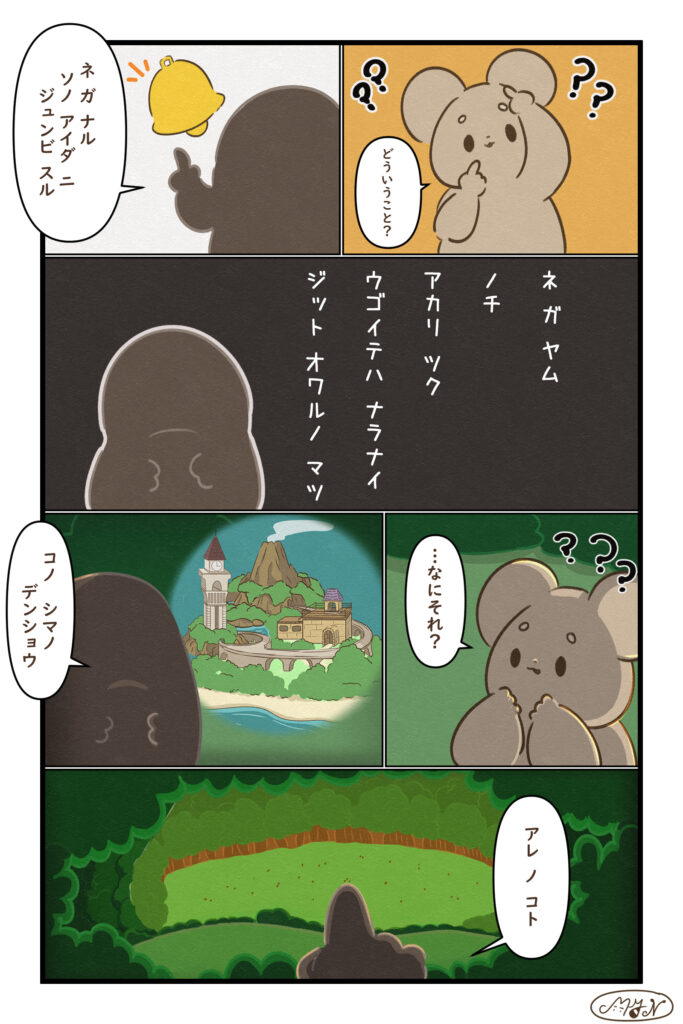 「ウサノ」シリーズ 前回のお話 今回のお話 第96話 マニアッタ… 遠くで鳴り続ける、あの鐘の音。息を切らして、隠れているウサノと「キミ」。何が起きているのか、ウサノにはまだ分からない。 第97話 あぶない場所 「アンコ」「キケン」短い言葉で、「キミ」は必死に伝えようとする。ウサノはまだ、全部は分からない——。 第98話 アレノコト 島に伝わる、いくつかの決まり。短い言葉で伝える「キミ」。ウサノはまだ、その意味を知らない——。 おまけ 伝承のある祠 次回のお話 準備中 以下のサイトで漫画を公開中です! M ...
